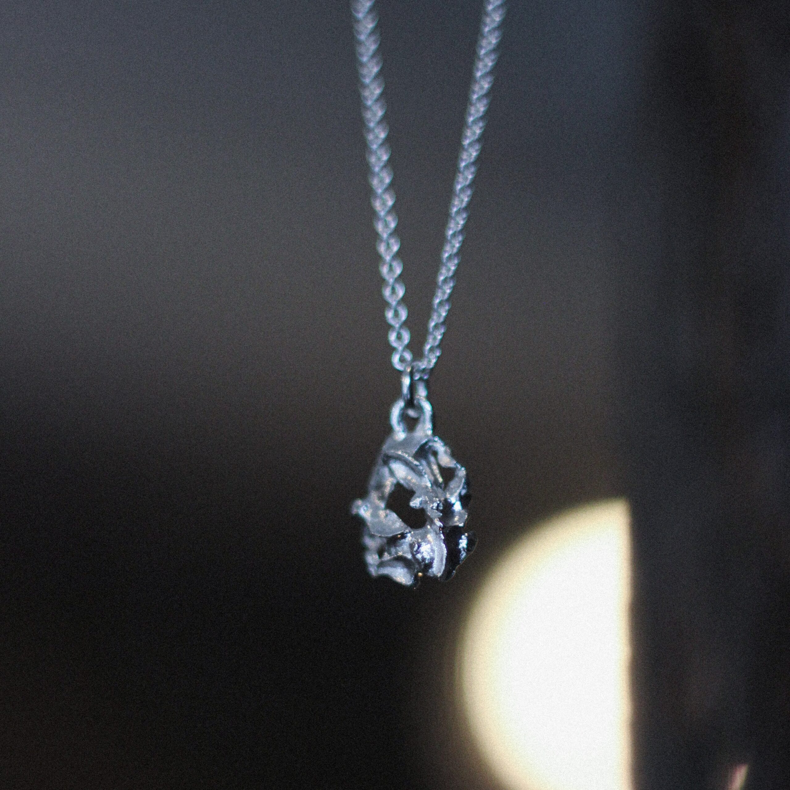 Kuura korusarjan pieni hopeinen kaulakoru on tyylikäs valinta jokapäiväiseen käyttöön. Rouhea, mutta samaan aikaan kevyt pinta tuo koruun sopivasti särmää.