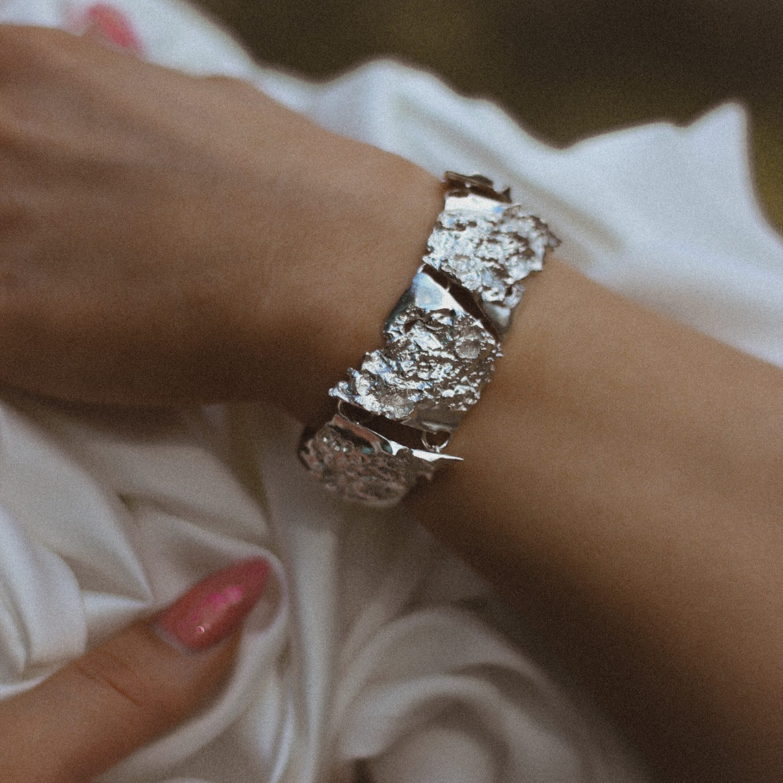 Rannekoru on näyttävä jo itsessään, mutta se on helppo yhdistää mihin tahansa Loimu korusarjan koruihin, luoden vieläkin vaikuttavamman kokonaisuuden.