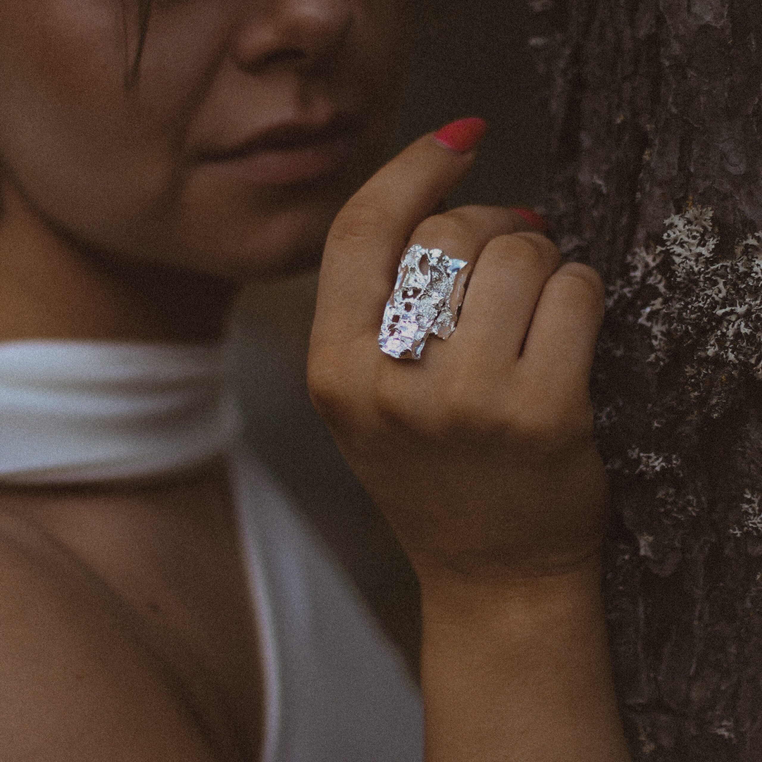 Loimu korusarjan näyttävä sormus on yhdistelmä rouheaa asennetta ja klassista tyylikkyyttä. Eläväinen pintatekstuuri tuo koruun persoonallisuutta.